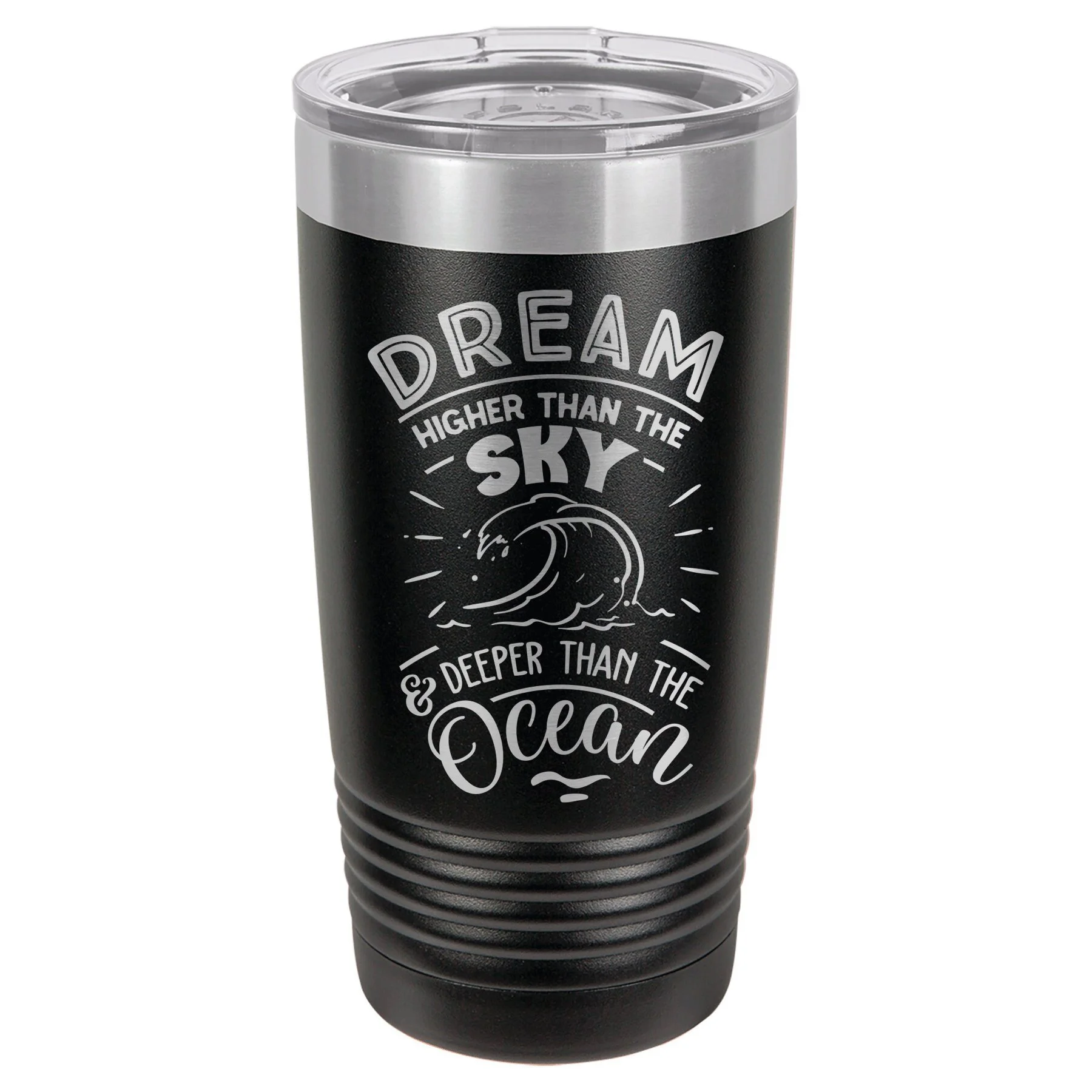 Dream higher than the sky and deeper than the ocean - Engraved Stainless Steel Tumbler, Beach Mug Gift, Vacation Tumbler, I Love The Beach
